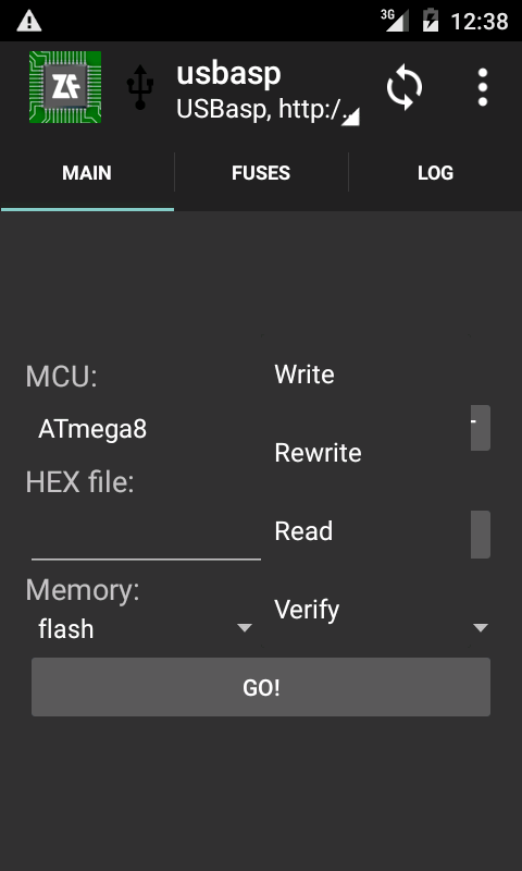 Zflasher is an android app that allows you to program your AVR device from your Android device. It supports the following programmers
